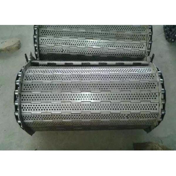 Stainless steel plate link conveyor belt is also called perfoated sheet conveyor belt . Plate link conveyor belt is made by metal perforated sheet and chains . It is very strong and can afford heavy weight product .